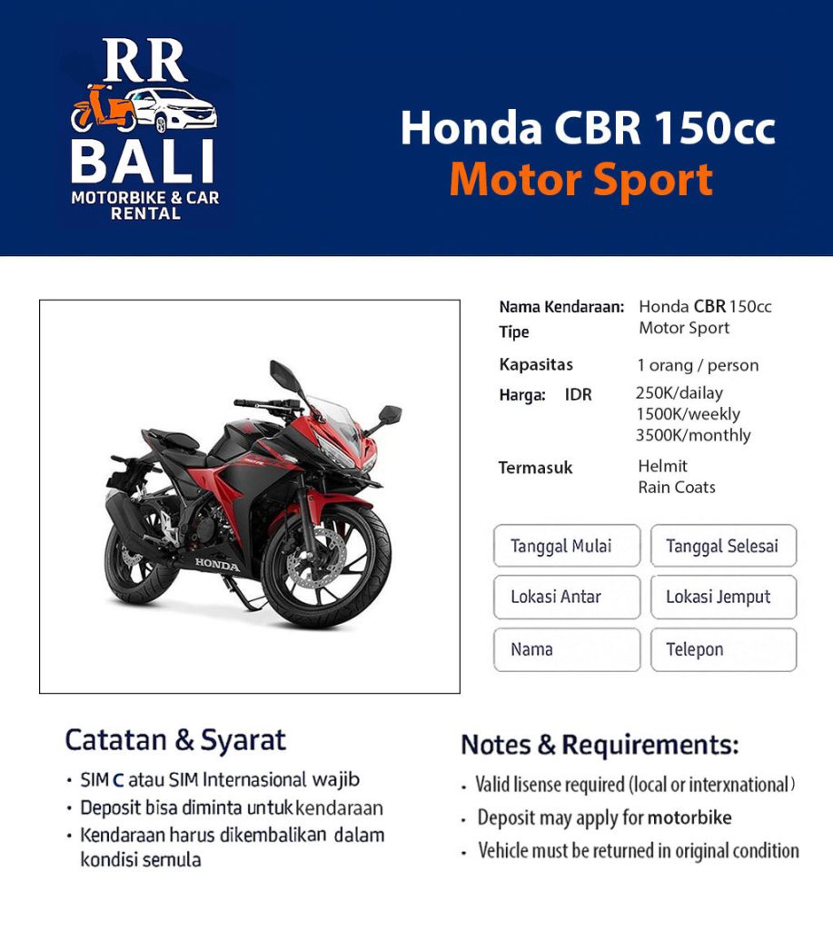 R.R. Bali Motorbike Rental BOOK BY WHATSAPP